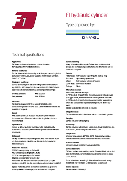 Udover DNV.GL typegodkendelse kan FJEROs F1-cylindre også leveres med materialecertifikater og trykprøvningscertifikater. F1-cylinderen tilbydes også med andre 3-parts godkendelser som f.eks. ABS, Lloyd´s, Bureau Veritas, RINA, CCS m.fl.